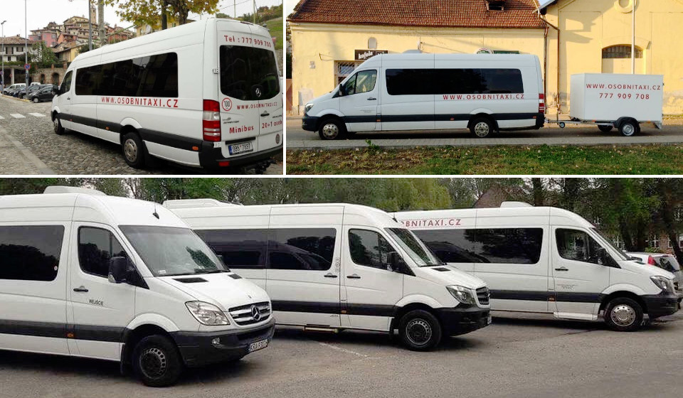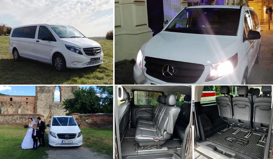 Minivany Mercedes Benz pro přepravu 1-8 osob.